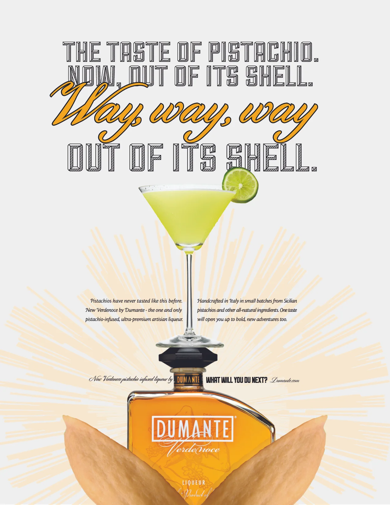 Dumante is a pistachio liqueur that wanted to hit the ground running when it launched. With its unique and elegant bottle having such a distinctive look it only made sense to make it front and center.