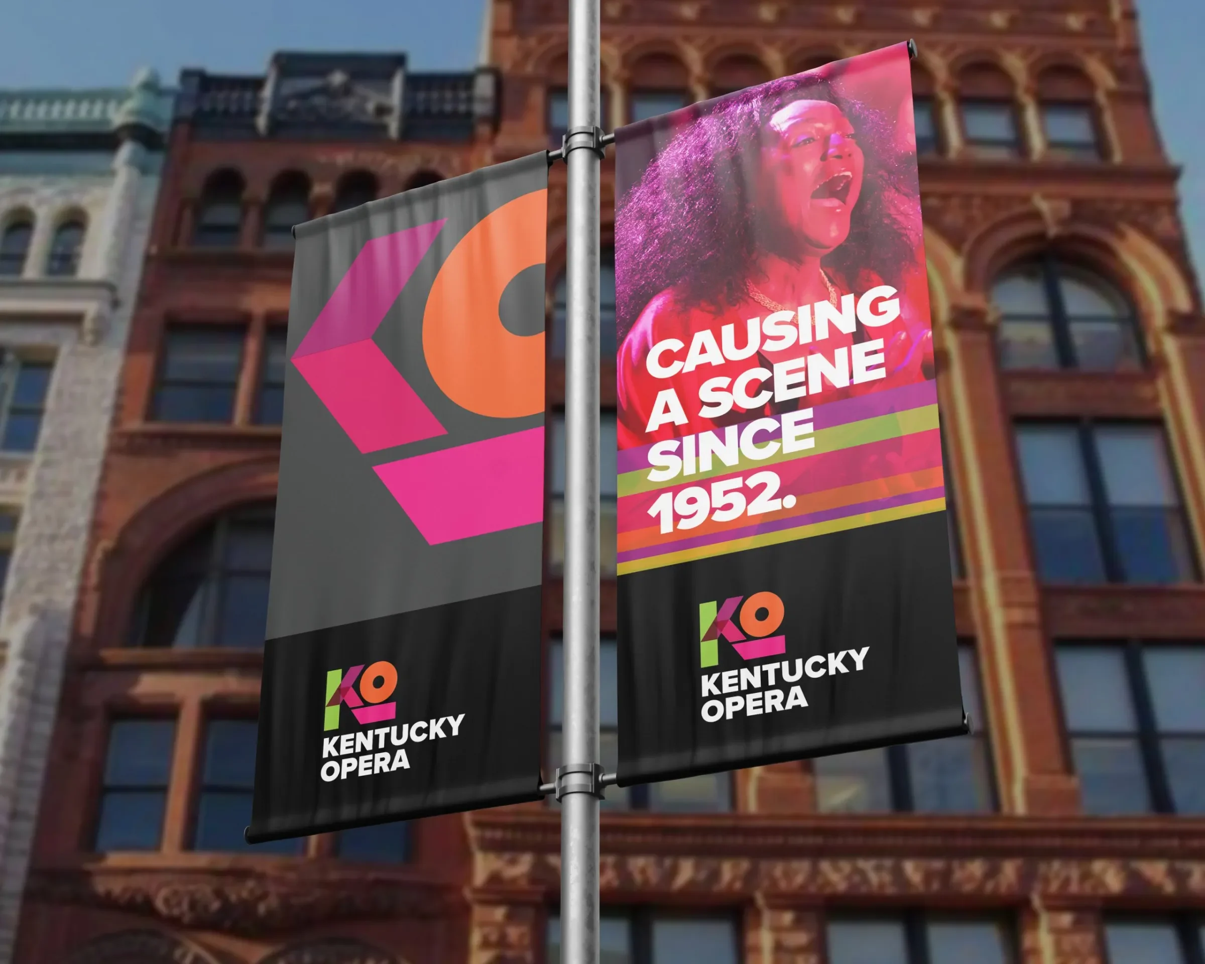 Moritz von Bomhard founded Kentucky Opera in 1952, driven by a passion for bringing new works to the stage. In just the 1950s, the company premiered five world-first productions — a testament to its innovative spirit. That same spirit continues today. To help Kentucky Opera move boldly into the future, we refreshed their brand with a modern, progressive identity. The new logo mark captures the essence of an opera singer — powerful, expressive, and timeless.